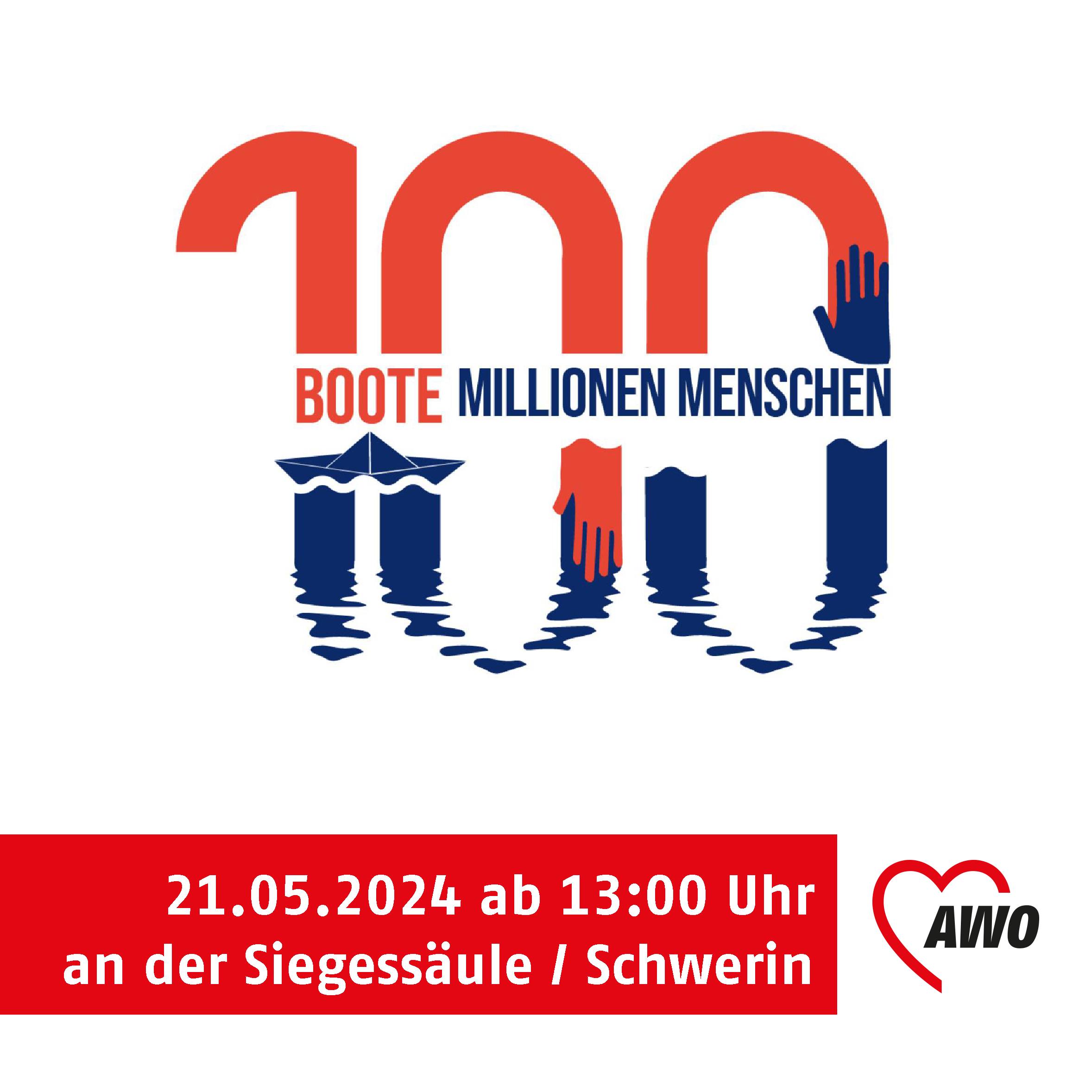 Am 21. Mai, um 13:00 Uhr werden 7 künstlerisch gestaltete XXL Papierboote, im Rahmen der bundesweiten Aktion „100 Boote – 100 Millionen Menschen“, vor der Schlossbrücke in Schwerin zur Weiterreise nach Berlin übergeben.