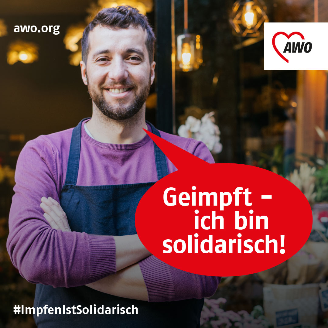 Als Trägerin von Einrichtungen und als Wohlfahrtsverband, der mit der Versorgung, Begleitung und Betreuung besonders vulnerabler Gruppen beauftragt ist, begrüßt die Arbeiterwohlfahrt die Impfung gegen das Corona-Virus. Entsprechend unterstützt die AWO-Kampagne „Impfen ist gelebte Solidarität“ nachdrücklich die Impfkampagnen des Bundes und der Länder. Die AWO ruft dazu auf, sich impfen zu lassen sowie andere zu einer Impfung zu motivieren oder zu befähigen, um gemeinsam den Ausweg aus der Pandemie zu ebnen.