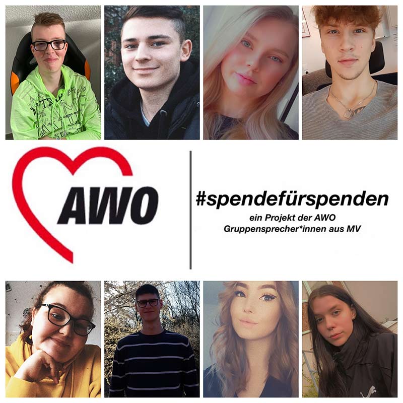 Die Gruppensprecher*innen der Freiwilligendienstleistenden (FSJ / BFD) der AWO in M-V möchten mit ihrer Aktion #spendefürspenden dazu motivieren, Blut zu spenden und das damit verbundene finanzielle Dankeschön einem guten Zweck zukommen zu lassen. Angesprochen sind vor allem junge Menschen Ü18, aber natürlich sind keine Altersgrenzen gesetzt. Bei der Aktion gehen die Blutspenden wie gewohnt an die Blutbanken; das Geld, das die Spenderinnen und Spender als Aufwandsentschädigung erhalten, überweisen sie im Rahmen von #spendefürspenden auf das entsprechende AWO-Konto. Eine Spendenbescheinigung wird auf Wunsch ausgestellt.