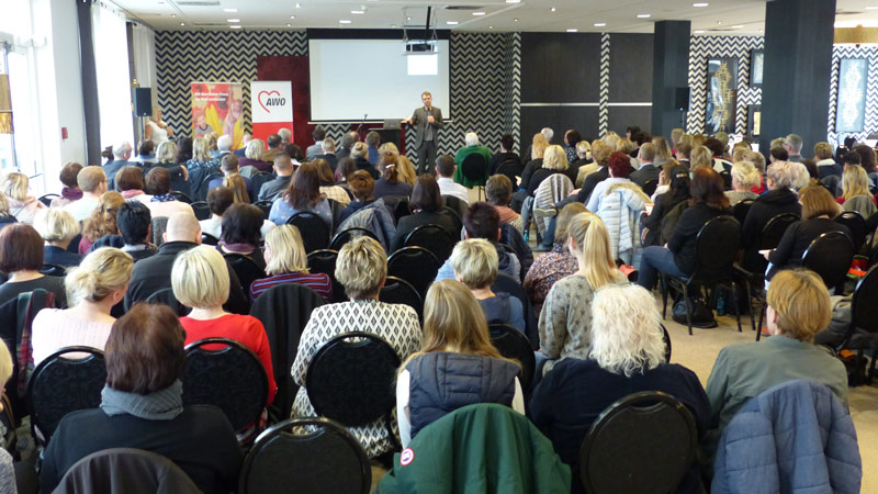 Susanne Wegner; AWO Kita „Klinikzwerge“ in PasewalkDie beiden Organisatoren, der AWO Landesverband MV und der DRK Landesverband MV haben mit diesem Thema ins Schwarze getroffen. 165 Gäste folgten der Einladung. Darunter Kita-Leiterinnen, Elternvertreter*innen aber auch Vertreter aus Politik und Verwaltung. Nicolaus Voss, Staatssekretär im Ministerium für Soziales, Integration und Gleichstellung stellte zunächst den Entwurf des Gesetzes zur Einführung der Elternbeitragsfreiheit, zur Stärkung der Elternrechte und zur Novellierung des Kindertagesförderungsgesetzes (KiföG) vor. Im Saal hörte man leichtes Grummeln, als er davon sprach, dass der Fachkraft-Kind-Schlüssel im Land „nur schrittweise“ erhöht werden könne. Die Elternbeitragsfreiheit sei gut, aber die Erzieher*innen müssten sich um zu viele Kinder kümmern. Da könne man nicht über eine qualitative Betreuung sprechen, so der einhellige Tenor im Saal.